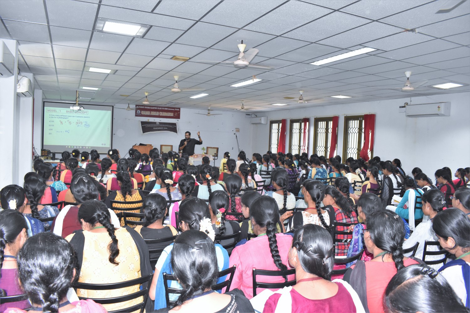 A three-day placement training programme was organized for final year UG&PG students from 21.1.2026 to 23.1.2026. Mr. A. Manoj Kumar, Aspire Training Services, Coimbatore, gave aptitude training on “Aptitude Tricks for Placement Phase-I”. 238 students got benefitted through this programme
