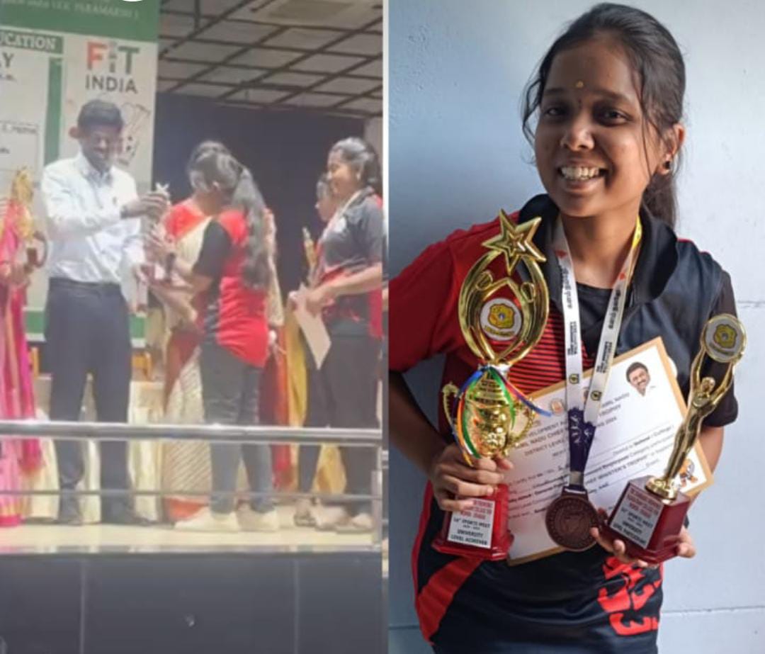 Ms. M. Vishali – Won IIIrd place in district level CM Trophy – Football match and received Cash prize on 09.09.2024