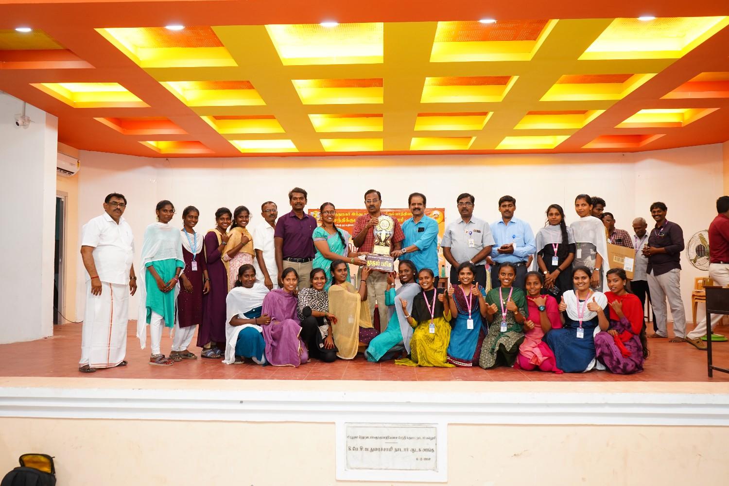 Won the Overall Shield at தமிழ்ப்பெருவிழா – 2026, organized by VHNS College, Virudhunagar, showcasing talents in Mono Act, Padam Parthu Thirukkural Solluthal, Quiz, Dance, Drawing, Essay Writing, Speech, and Thirukkural Writing Competitions.
