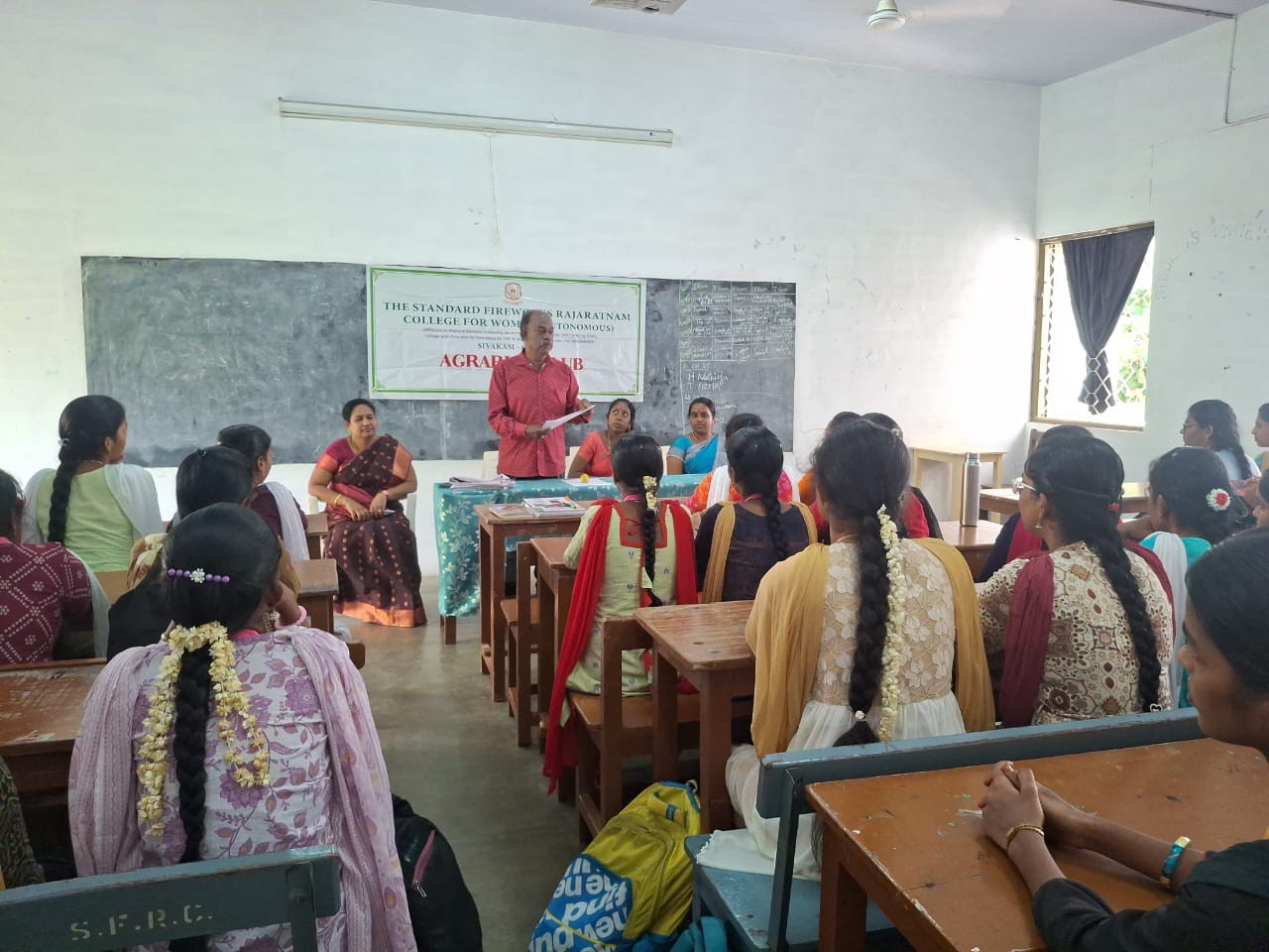 Agrarian Club volunteers attended Workshop on "Smart Gardening" on 12 August 2025. Mr. V. Hariharan, Horticultural Officer at the State Horticulture Farm, Srivilliputhur acted as a resource person. The workshop offered practical demonstrations and valuable insights into efficient gardening techniques, water management, and sustainable cultivation methods.