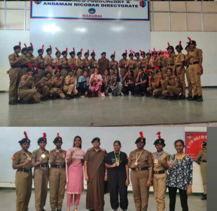 54 cadets attended Annual Training Camp at NCC Training Academy, Idayapatti Madurai from 01.12.2025 to 10.12.2025. Our College won the first place in Drill Competition, Throw ball competition, Group dance and Group Song